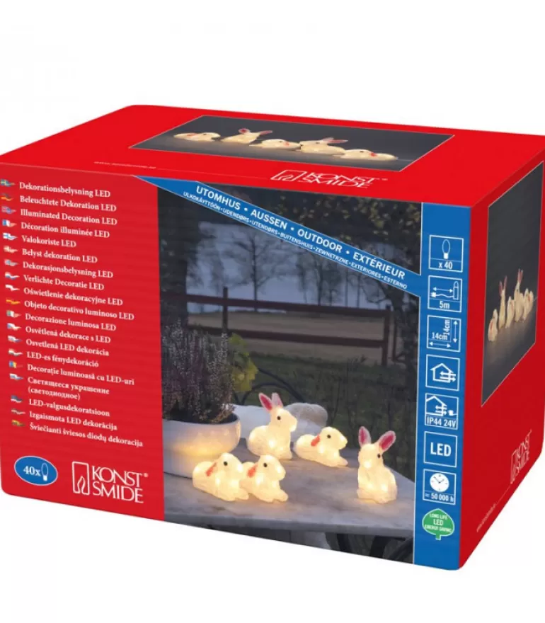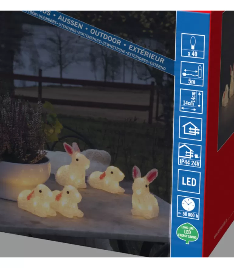 Lot De 5 Lapins Lumineux En Acrylique, 40 Diodes A Led Blanc Chaud, Hauteur 14 Cm.