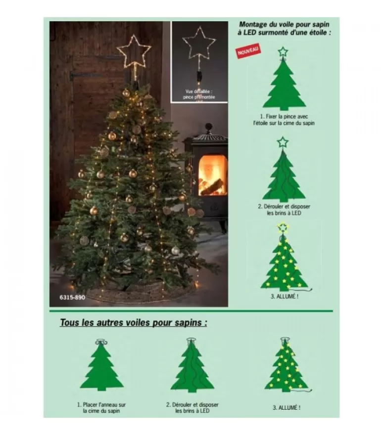 Voile Guirlande Pour Sapin De Noël A Led Avec Anneau