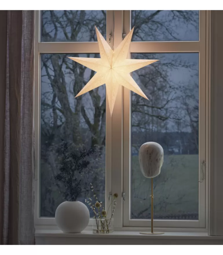 Etoile Lumineuse En Papier A Suspendre, Couleur Blanche, Motif Perfore, 7 Branches.