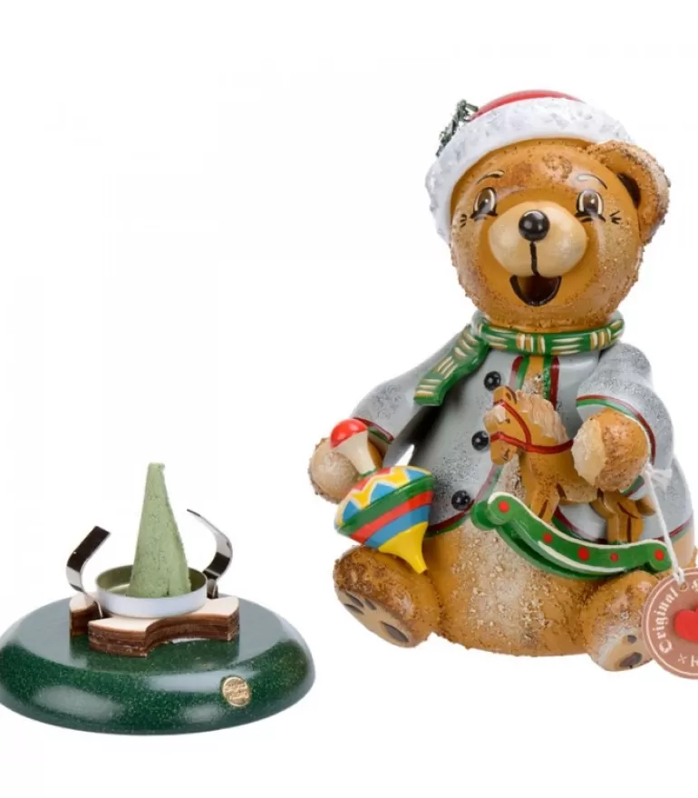 Ourson En Bois Peint Brule-Encens « Rauchermannchen ».Modele Ourson Et Cheval De Bois Et Toupie.A Utiliser Avec Cone De Se…