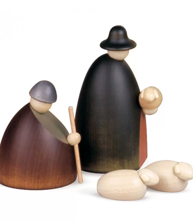 Personnages Crèche De Noël En Bois Peint.
