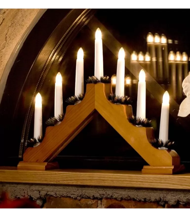 Chandelier De Noël Pyramide En Bois A Bougie Electrique, Couleur Chene.